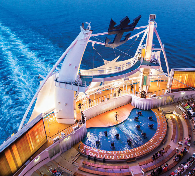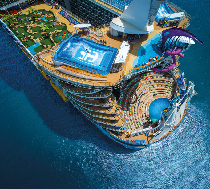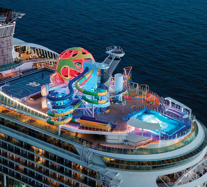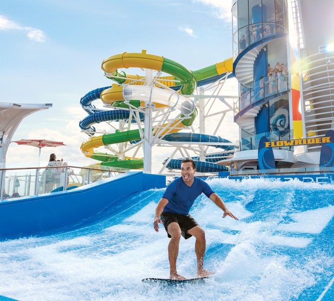 Erkunde unsere revolutionären Kreuzfahrtschiffe, die mit einzigartigen Features wie Surfsimulatoren, Kletterwänden und sogar Eislaufbahnen ausgestattet sind.